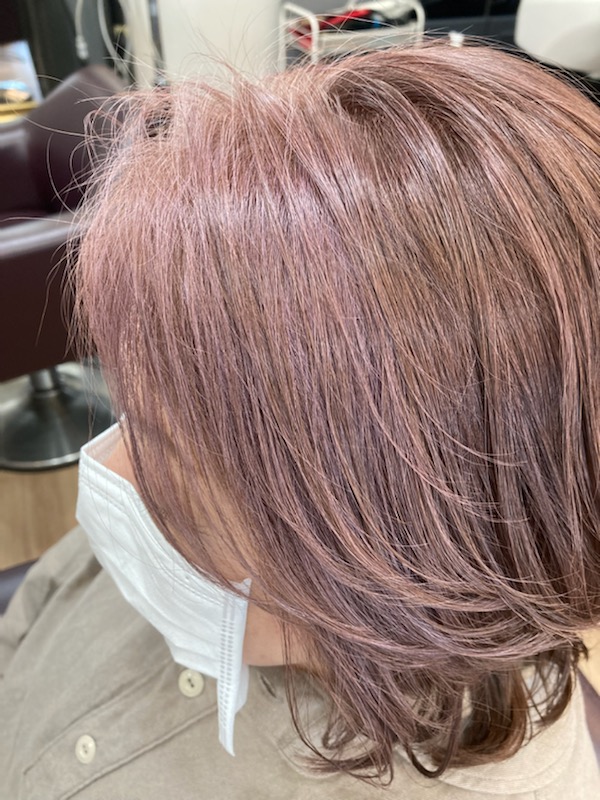 お顔周りの白髪をアッシュピンクにして