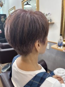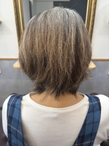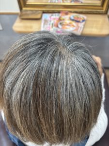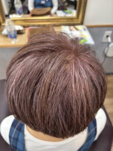 白髪を生かして明るめのお色で染めているお客様。