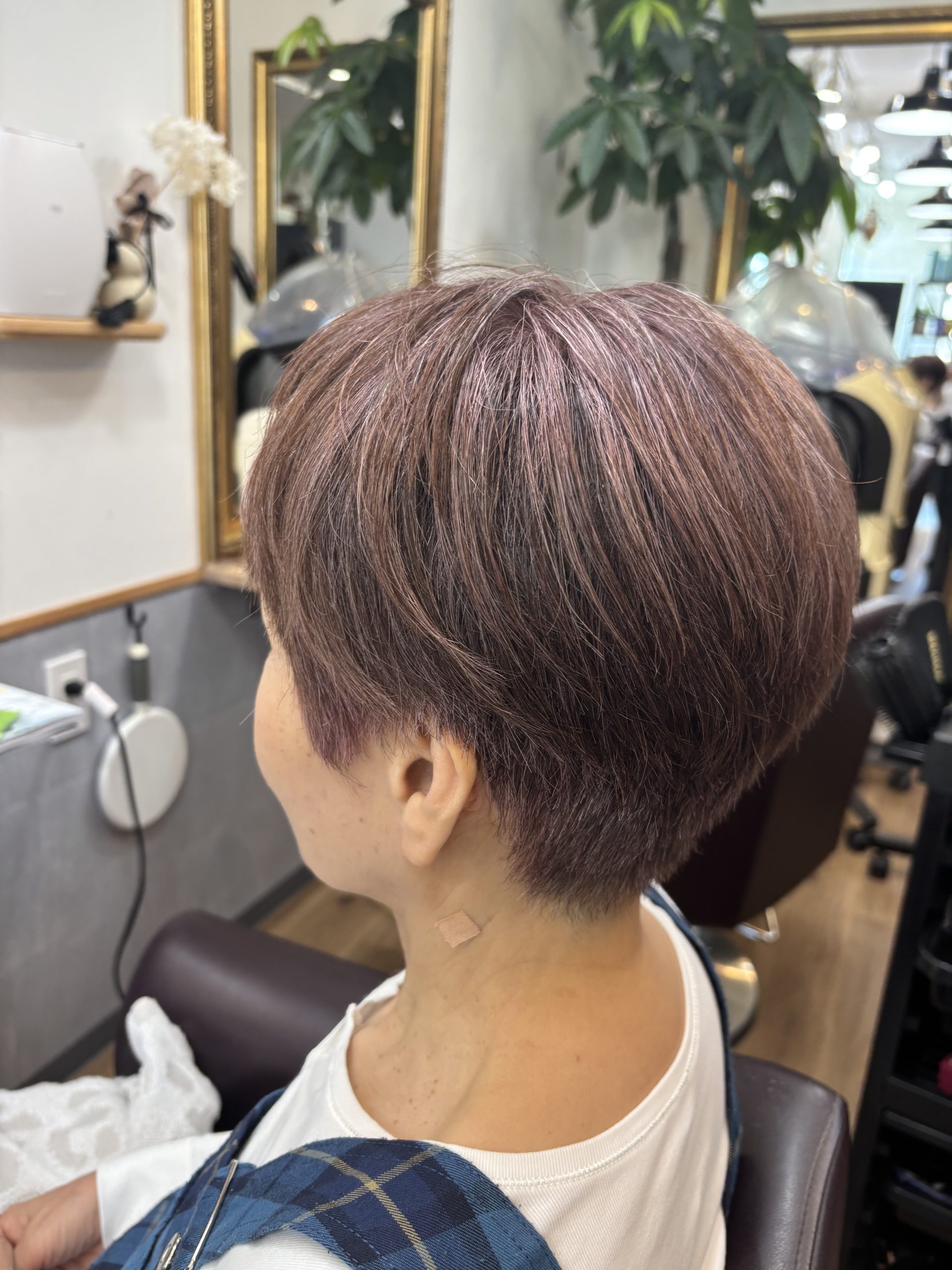 アッシュピンクが白髪に綺麗に入りました。