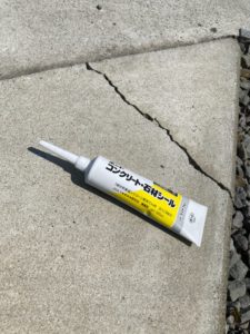 昨日暑い中駐車場の端っこのひび割れ治しました