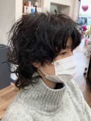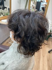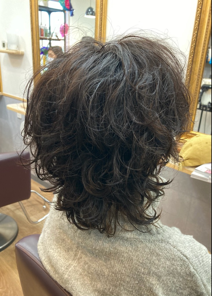 パーマのカールはバームを全体に伸ばして簡単スタイリング。